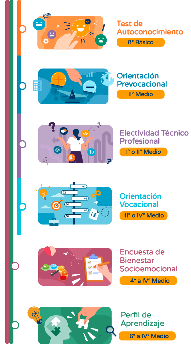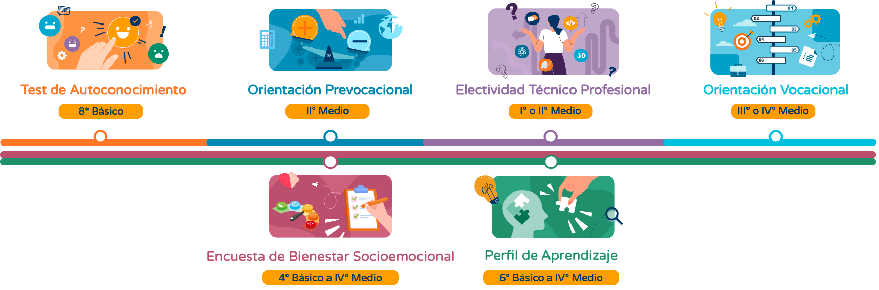 Conoce aspectos socioemocionales y cognitivos de tus estudiantes, junto con descubrir cuáles son los electivos más idóneos según sus intereses, ingresando de manera personalizada aquellos que tu institución ofrece.